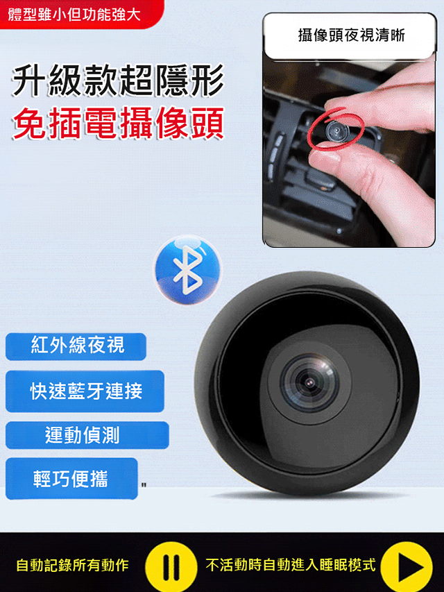 【升級款超隱形】免插電攝像頭