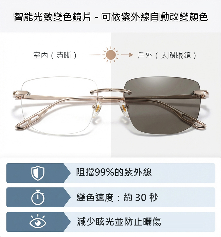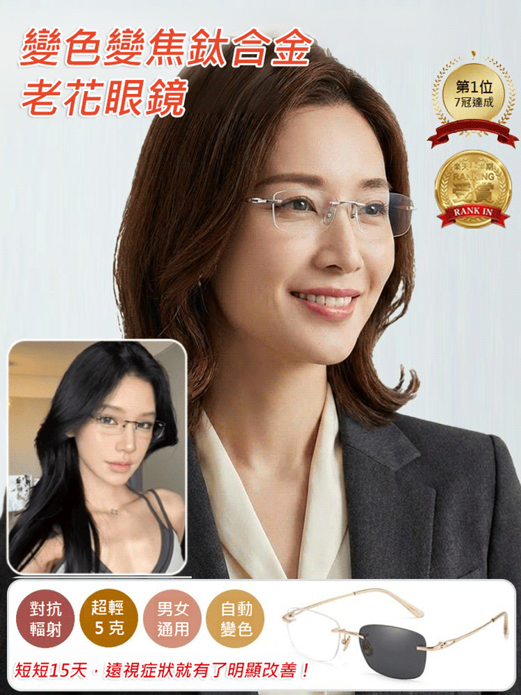 新款變色變焦鈦合金老花眼鏡